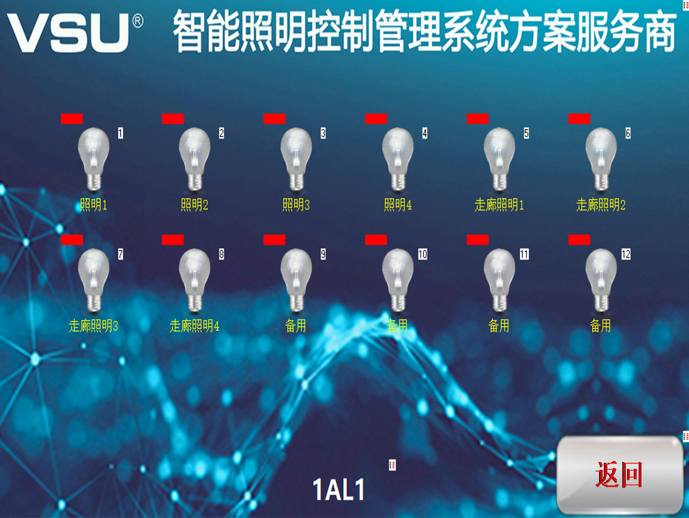 VSU為工廠提供定制照明方案,能夠最大程度改善工廠照明,提高用照明電效率,節(jié)能不必要的電腦浪費。下圖為該項目的照明終端控制界面: